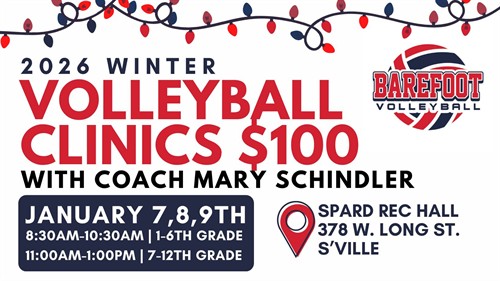 Name: 2026 VolleyBall ClinicsDate: January 7, 2026Time: 8:30 AM - 1:00 PM CSTWebsite: Click here to follow us on Facebook!