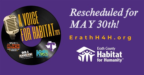 Erath County Habitat for Humanity  is excited to share that A Voice For Habitat has been rescheduled for ?? May 30, 2026, in the beautiful Tarleton Ballrooms.