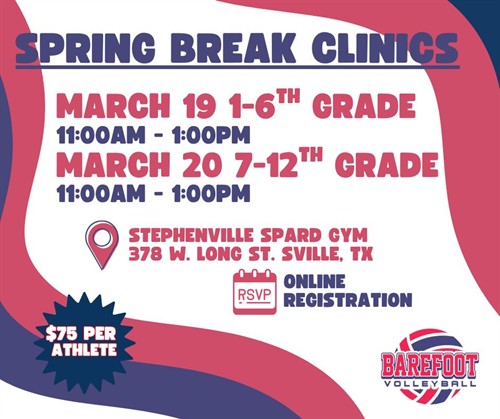 Dive into the action and sign up for the 2026 Spring Break Volleyball Clinics with Barefoot Volleyball Club!