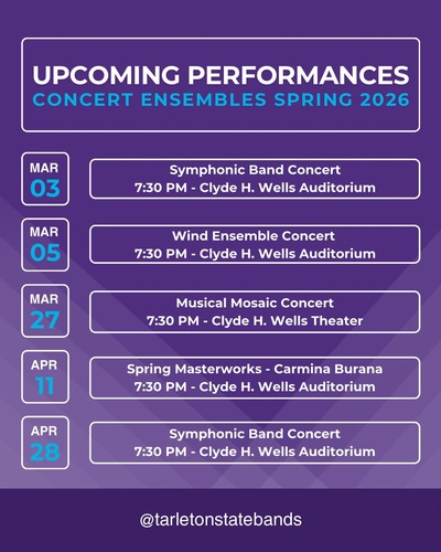 Our bands have a full slate of fantastic concerts in store and we can't wait to see YOU there! Mark your calendars for these stellar events!